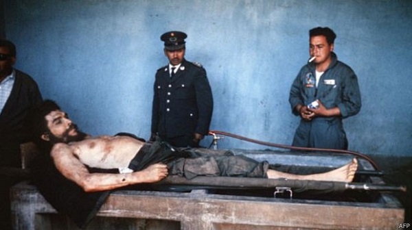 Depois de ter sido fuzilado no vilarejo boliviano de La Higuera, na Bolívia, o corpo de Che foi levado em um helicóptero para o hospital em Vallegrande.