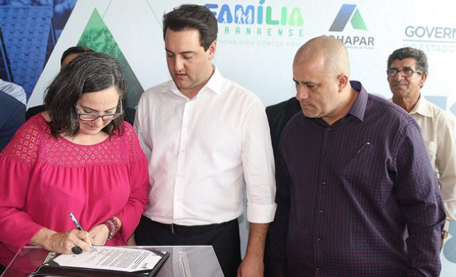 A ordem de serviço para as obras foi assinada pelo governador Ratinho Jr, o presidente da Cohapar Jorge Lange e o secretário da Família, Ney Leprevost.
