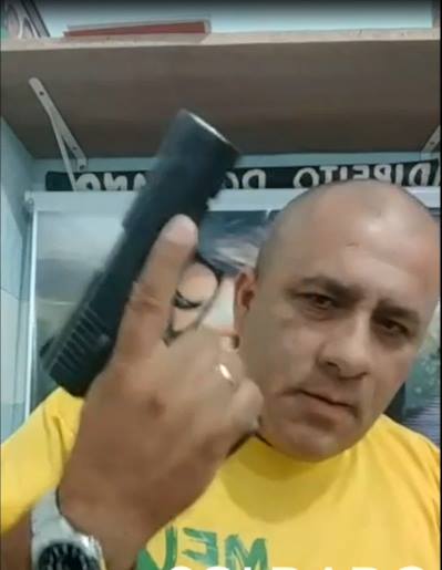 E nesse momento do vídeo, o candidato levanta um revólver para a câmera que estava gravando seu depoimento, postado neste dia 26 de setembro. Ele encerra seu vídeo com a frase: “acabo conversinha mimimi; se não for no amor vai ser na dor”.