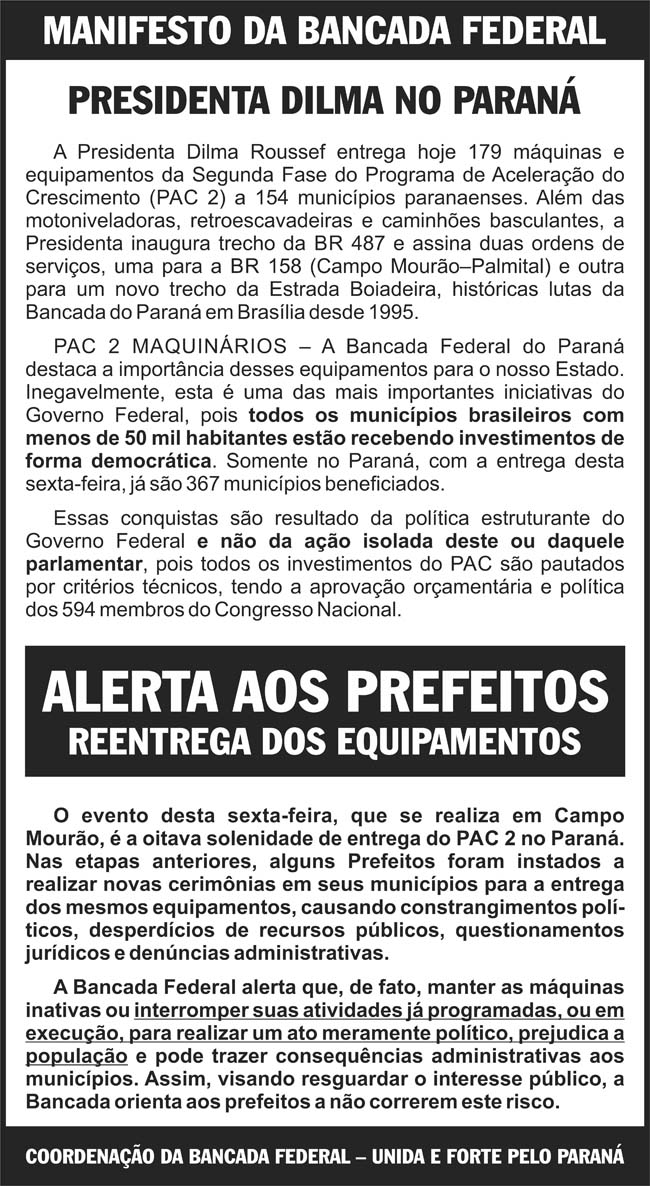 Bancada federal alerta aos prefeitos para evitar reentrega de equipamentos do PAC