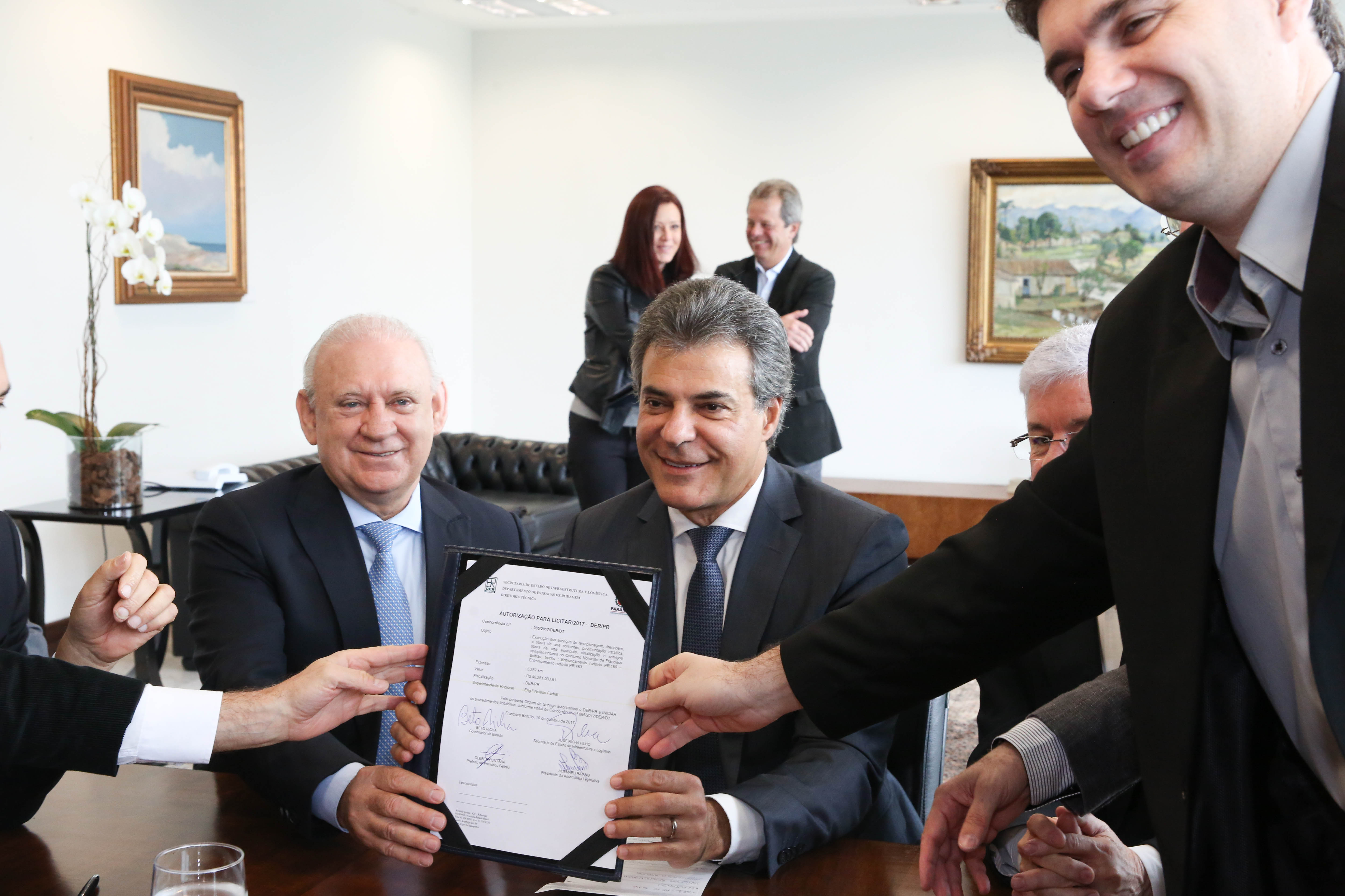 O governador Beto Richa autorizou nesta segunda-feira (16) a licitação da obra do contorno oeste de Francisco Beltrão. A obra, de R$ 40,2 milhões, vai ligar a PR-180 a PR-483 e tirar o tráfego de caminhões de dentro da cidade. Serão beneficiadas cerca 200 mil pessoas de 15 municípios da região. A autorização para a licitação foi assinada no Palácio Iguaçu, em Curitiba. O presidente da Assembleia, deputado Ademar Traiano (PSDB), o prefeito de Beltrão, Cleber Fontana (PSDB) e um grande número de lideranças do Sudoeste participaram da cerimônia.