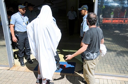 Emerson Petriv (PSC), vereador de Londrina, ficou injuriado com a suspensão da comissão processante contra a colega Sandra Graça (SDD). Sandra ganhou sete dias para fazer sua defesa por escrito. A abertura de CP foi feita com base na condenação da vereadora por manter suposto funcionário fantasma. Petriv protestou fantasiado de “fantasma”.