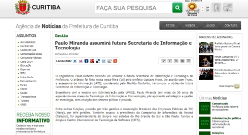 No dia 15 de fevereiro de 2013, o prefeito Gustavo Fruet (PDT) anunciou que o engenheiro Paulo Roberto Miranda assumiria a futura Secretaria de Informação e Tecnologia da Prefeitura. Somente nesta quarta-feira, dia 19, portanto mais de um ano depois, a Câmara de Vereadores aprovou a criação da Secretaria que, mesmo sem existir, já tinha secretário.